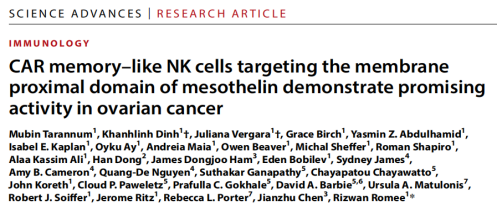 科研赋能|靶向间皮素的CAR记忆样NK细胞:卵巢癌治疗的新希望